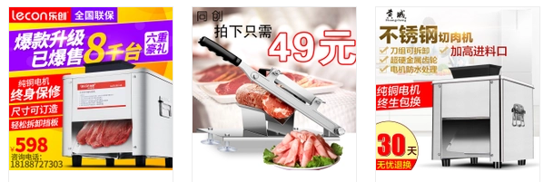 大家在选好产品之后,首先要去做的不是作图、上新,而是去数据分析。最简单的方法要去看两个数据,一是宝贝数、而是搜索指数。今天我们以我们分析出来的切片机举例,看下面数据: